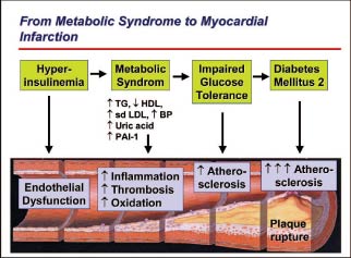 Obwohl kardiovaskuläre Erkrankungen die häufigste klinische Manifestation des metabolischen Syndroms sind, steht die Insulinresistenz mit entsprechend erhöhtem Risiko zur Entwicklung eines Diabetes mellitus pathophysiologisch im Vordergrund. Sobald diese klinisch manifest wird, steigt das kardiovaskuläre Risiko markant an und erreicht ein Ausmass, welches dazu geführt hat, dass Diabetes mellitus heute hinsichtlich der prognostischen Bedeutung als Äquivalent zu einer bereits manifesten arteriosklerotischen Endorganschädigung bezeichnet wird.