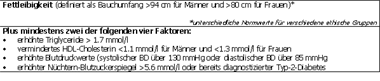 Tabelle 1: Definition des metabolischen Syndroms gemäss der internationalen Diabetesföderation, Konsensuskonferenz April 2005.