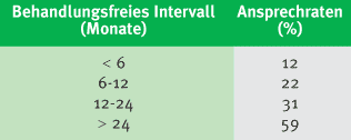 Abbildung: Ansprechraten von Platin beim Rezidiv eines Ovarialkarzinoms