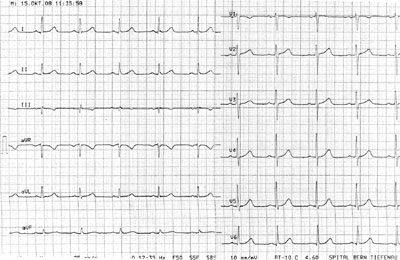 Bevor Sie etwas unternehmen können, geht es dem Patienten plötzlich wieder gut. Sie fertigen ein Kontroll-EKG an: